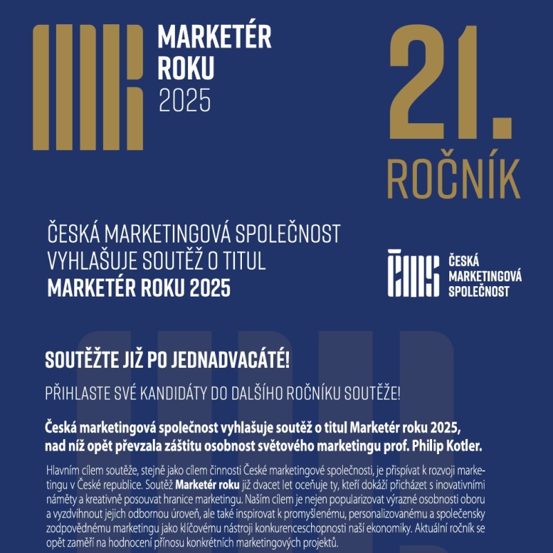 Česká marketingová společnost vyhlásila soutěž o titul Marketér roku 2025, nad níž opět převzala záštitu osobnost světového marketingu prof. Philip Kotler.